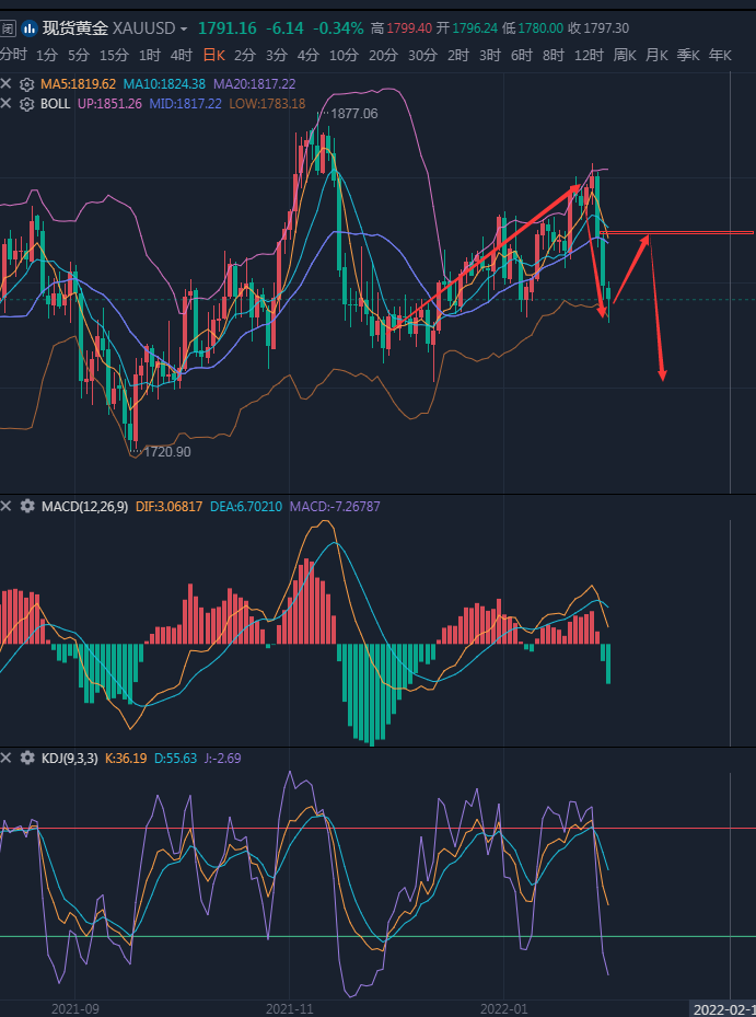 主思路是做空,但是空单一定等反弹在参与,毕竟连续跌了三天,下周激进者1795-1800区域空,稳健者中轨附近1818-1820附近空,还是那句话只要你坚持黄金后期相对做空操作,一定转到盆满钵满。
