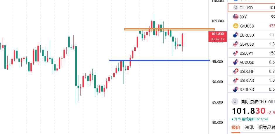 原油的话,随着战局的持续,市场真假消息难辨,现状是目前霍尔木兹海峡依旧处于封锁状态,中东战火有望升级,所以导致原油走势会更加反复,尤其是当下很多情况逐步明朗的情况之下,美对快速结束战争有心无力,而且逐步缺少帮手,有些鞭长莫及,但是压力依旧会给足,关注后续的局势变化情况了,技术面上目前105/6依旧是强压,95/6短期支撑,操作上阶段性围绕这个区间做高抛低吸操作即可。