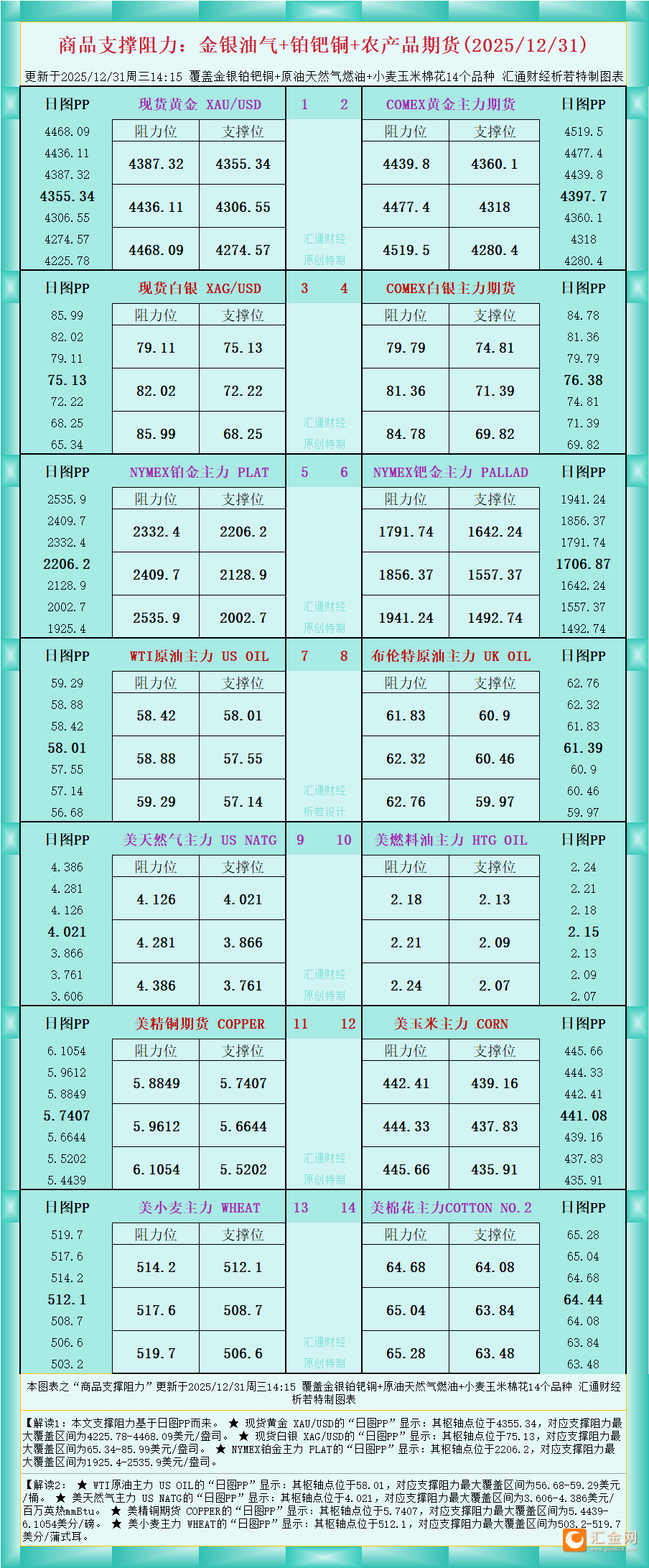 【图:黄金原油外汇股指枢轴点及多空持仓信号解读,来源:汇通财经特制图表。(点击图片放大看大图)】