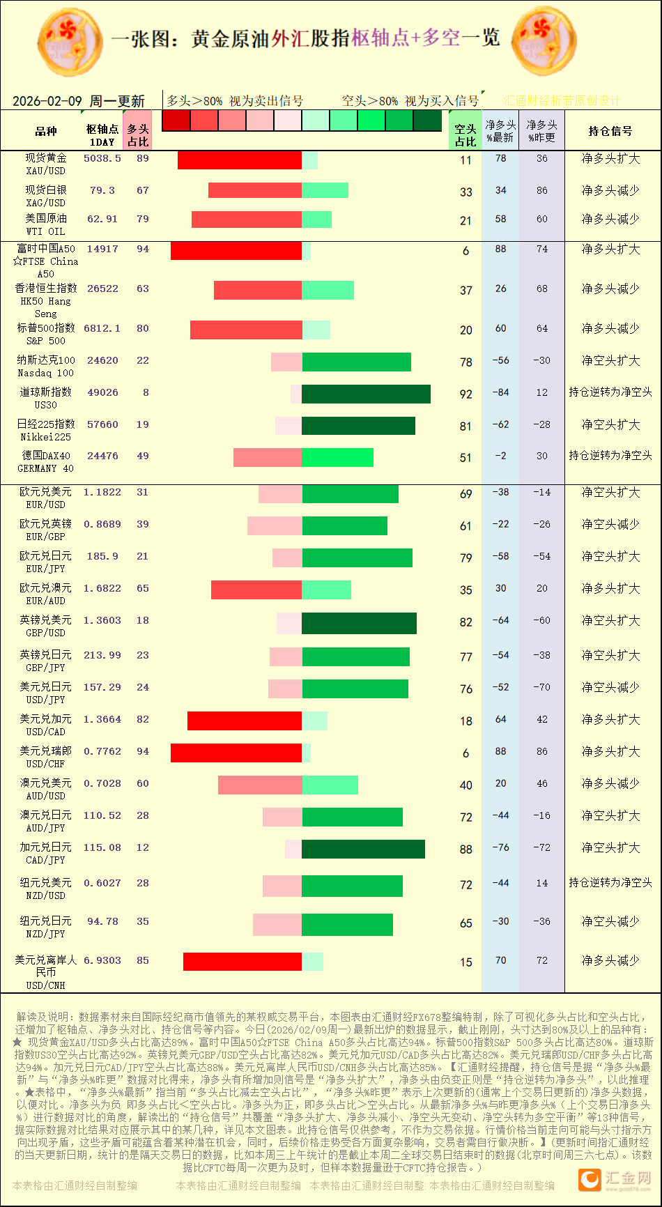 一张图看直盘支撑阻力:美元+欧系日系+商品货币+新兴货币,更新于2026年2月9日周一13:45,具体美元/欧元/日元/英镑/瑞郎/澳纽加元+人民币/港币/卢布/兰特/克朗等18个直盘,更多详见汇通财经析若特制图表中的内容。