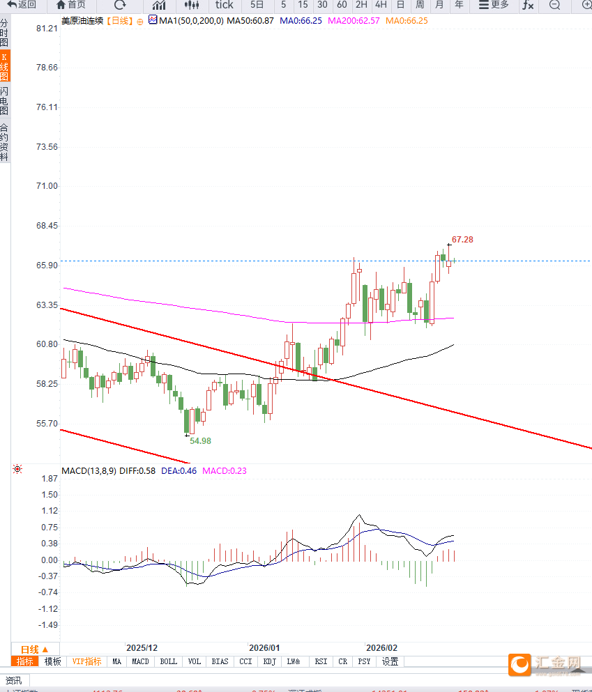 周二(北京时间2月24日)亚市早盘,现货黄金交投于5240美元/盎司附近,金价周一强势上扬,触及三周高点,特朗普宣布将临时关税上调至15%,新一轮政策不确定性加剧了市场避险情绪,推动资金涌入黄金;美原油交投于66.26美元/桶附近,油价维持在六个月高点附近,美国与伊朗宣布将于周四在日内瓦举行第三轮核谈判。