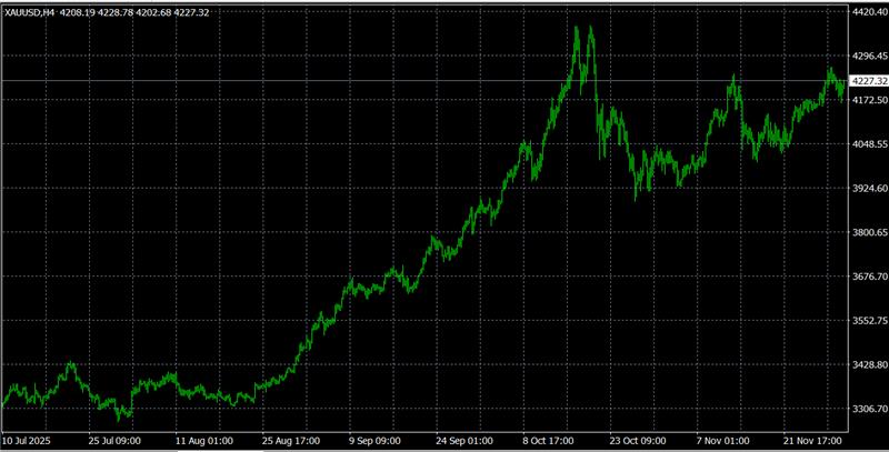 本月,极端市场波动后迅速反转已成为金融市场的一个显着特征,这与特朗普明显的政策即兴方式有关。本周黄金的走势便是一个例子,由于特朗普指向鲍威尔的言论和关税问题,黄金价格一度冲至3500美元(创下新高),随后在贝森和特朗普对中国和鲍威尔发出较温和的言论影响下出现反转,避险需求减弱。