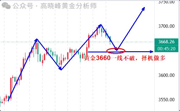 晚间黄金建议:现价3668-3660做多 止损3655 目标3690-3700