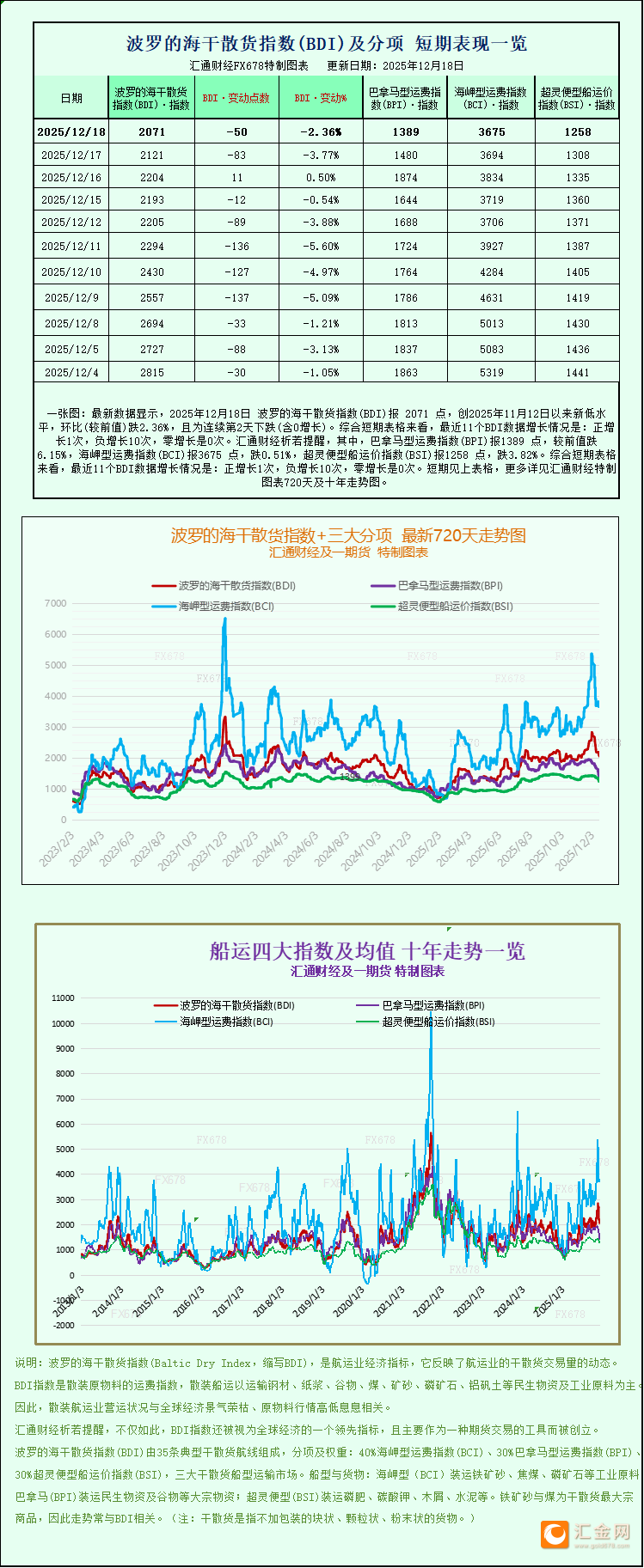 一张图:波罗的海干散货指数全线下跌,创逾一月新低