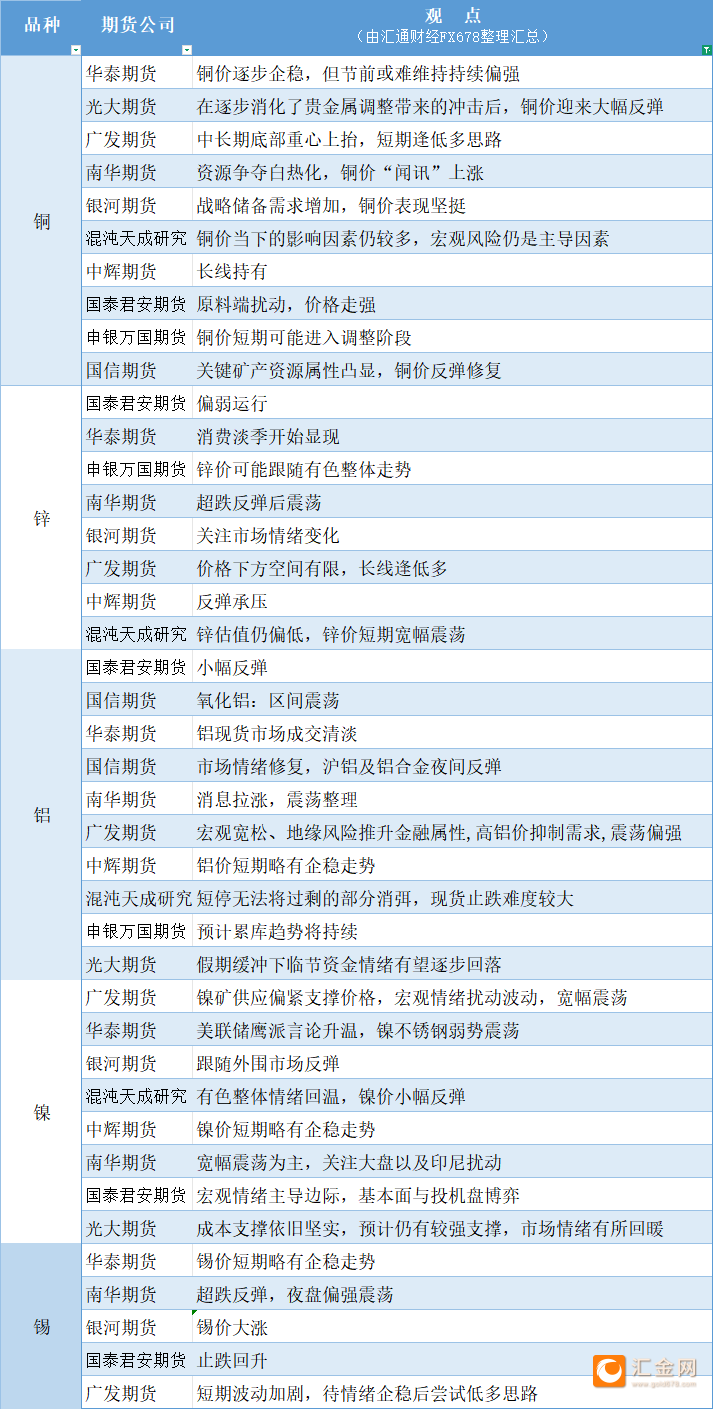 期货公司观点汇总一张图:2月4日有色系(铜、锌、铝、镍、锡等)