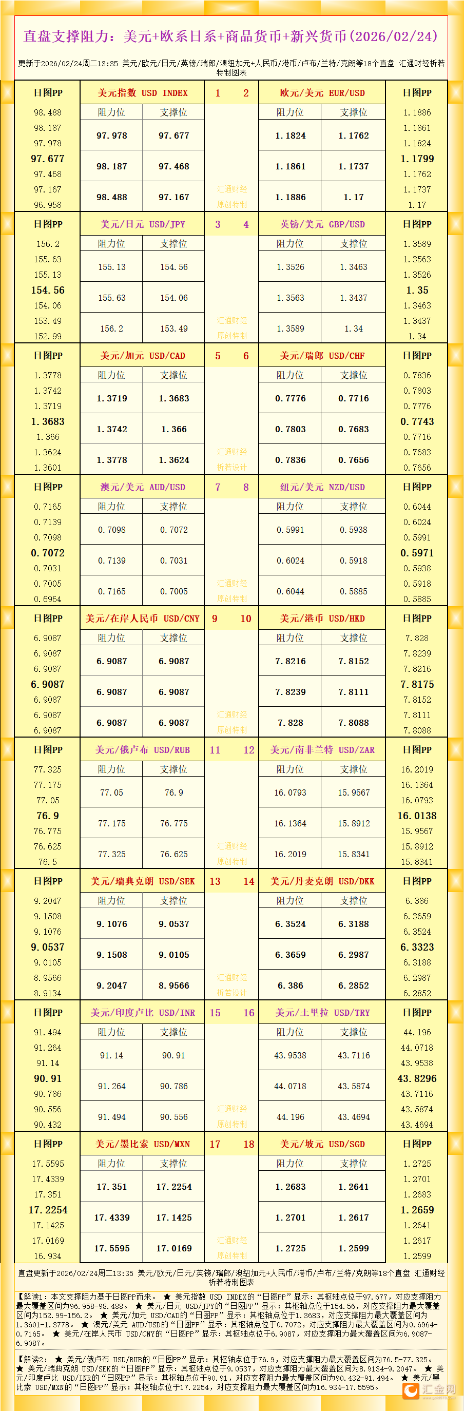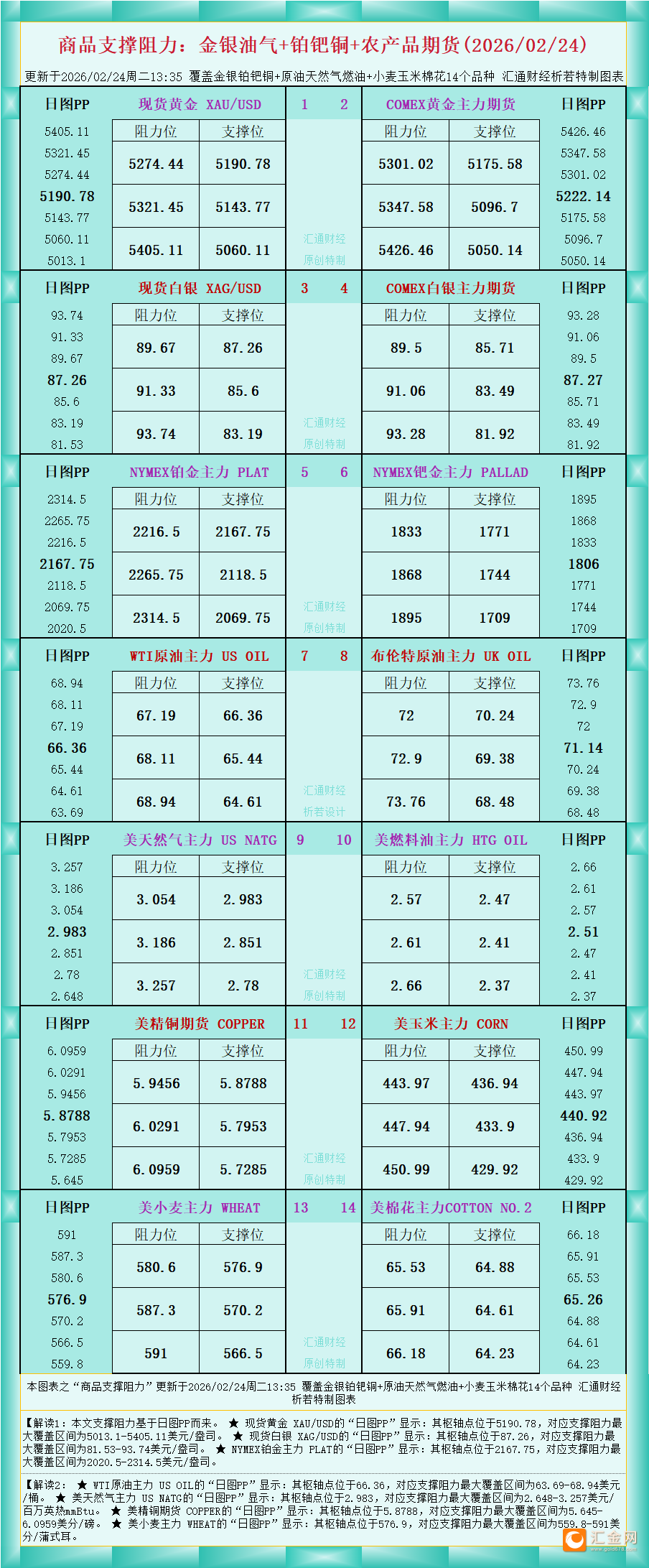 【图:黄金原油外汇股指枢轴点及多空持仓信号解读,来源:汇通财经特制图表。(点击图片放大看大图)】