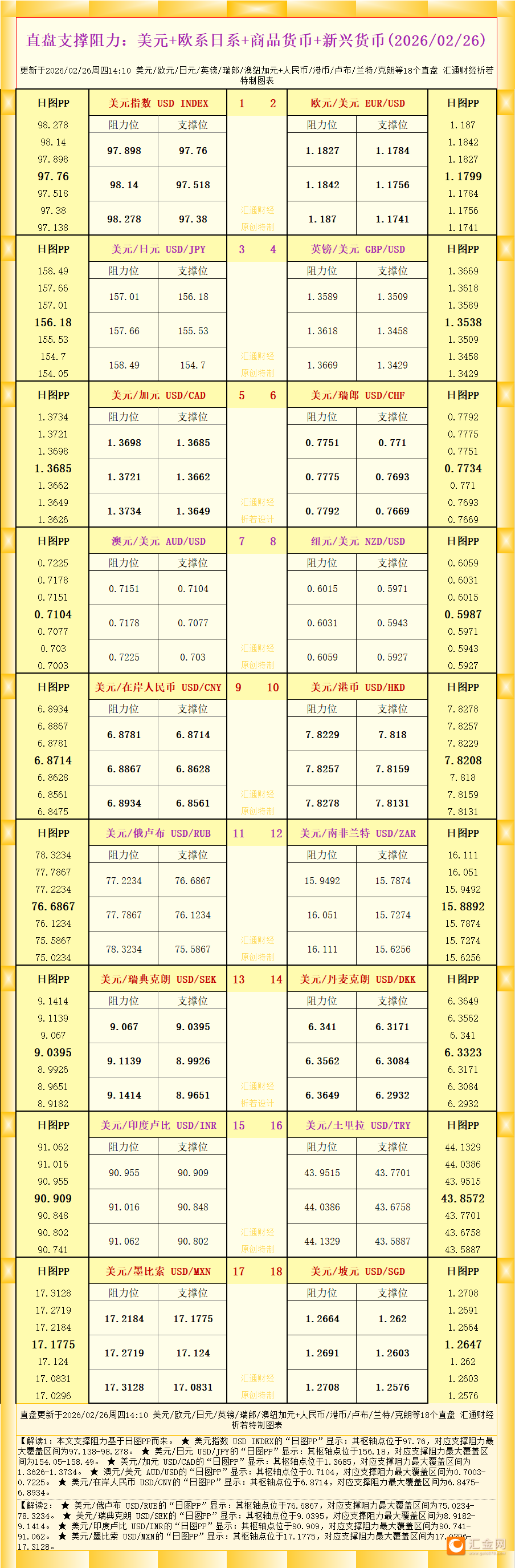 【三星正筹备硅碳负极电池手机,称新技术需通过严格质量检测】 三星电子执行副总裁、智能手机研发团队负责人Moon Sung-Hoon在Galaxy Unpacked 2026活动前的媒体圆桌会议上透露,三星已着手准备推出搭载硅碳负极电池的智能手机,将在适当时机发布。他坦言三星MX在电池创新方面可能略有滞后,但强调硅碳负极等新技术必须通过公司极其严格的质量检测认证;一旦确认其能够最终改善客户体验,三星会考虑采用这一选项。据悉,在即将发布的Galaxy S26系列中,仅有标准版电池容量提升300mAh,S26+和S26 Ultra则保持与上代相同水平。 02-26 14:41【效率突破15% 我国新一代太阳能电池研究取得新进展 】 近日,中国科学院青岛生物能源与过程研究所研究团队在一种新型太阳能电池材料上,实现了超过15%的光电转换效率,并获得了国际权威机构认证。相关研究成果在国际能源与材料领域学术期刊《自然·能源》发表。据了解,这项技术的核心材料叫:铜锌锡硫硒太阳能电池(简称CZTSSe)。其材料来源广泛,主要元素在地壳中储量丰富,不依赖稀有金属,材料成本低;其次溶液法制备,制备成本低;薄膜电池,材料用量低;另外,该材料还安全环保,不含有毒元素,适合大规模应用,在复杂环境中依然能保持性能。(央视新闻) 02-26 14:38日本执政党自民党的参议院议员铃木宗男呼吁欧洲国家停止支持弗拉基米尔·泽连斯基,并开始思考以和平方式解决冲突。 02-26 14:36【技术分析:现货黄金在5158-5205美元区间呈中性,突破后将指明方向】 1. 现货黄金当前在每盎司5158美元至5205美元的区间内呈现中性态势。若跌破5158美元,可能进一步下探5121-5140美元区域;若突破5205美元上方,则有望上涨至5220-5243美元区间。 2. 短线偏向略微偏向上行,因自5093美元启动的第5浪似乎尚未完成。该浪目标预计在5243美元或更高水平。日线结构上,自4841美元开启的C浪尚未实现其5286美元的目标位,该浪可能在此附近结束,或延伸至5561美元。 3. 关键支撑位于5116美元,若跌破该水平,不仅将触发下跌至5011美元,还将意味着自4401美元以来的反弹行情已告终结。当前市场处于方向选择窗口期,需关注区间边界的突破情况 02-26 14:35日本总务大臣林芳正:无法评论美国投资计划下的第二批项目,也不否认曾有相关提案 02-26 14:35【IMF敦促美国合作减少贸易限制】 国际货币基金组织(IMF)2月25日发布美国2026年第四条款磋商声明说,美国应与其贸易伙伴进行建设性合作,消除对不公平贸易行为的担忧,并致力于推动就减少具有负面跨境影响的贸易限制等达成一致。声明表示,加征关税会扭曲生产性资源的配置、扰乱全球供应链并削弱全球贸易的效益,从而增加成本。 第四条款磋商是国际货币基金组织每年对成员国经济表现和宏观政策的例行判断与评估。国际货币基金组织此次对美国2026年第四条款磋商围绕2025年美国经济政策转向的评估展开,并包含其政策对美国、美国的贸易伙伴及全球经济的影响。美国政府2025年初开始出台大范围加征关税政策,扰乱全球贸易秩序,也造成美国出口市场受阻。(CCTV国际时讯) 02-26 14:34日本总务大臣林芳正:需与商业银行就细节展开工作,以敲定相关协议 02-26 14:33日本总务大臣林芳正:相信美国一揽子计划下的3个投资项目具有银行融资可行性 02-26 14:33索尼将股票回购规模扩大 1000 亿日元,至多达到 2500 亿日元 02-26 14:32【2月26日:“农产品批发价格200指数”比昨天下降0.70个点】 据农业农村部监测,2月26日“农产品批发价格200指数”为127.07,比昨天下降0.70个点,“菜篮子”产品批发价格指数为129.50,比昨天下降0.82个点 02-26 14:31