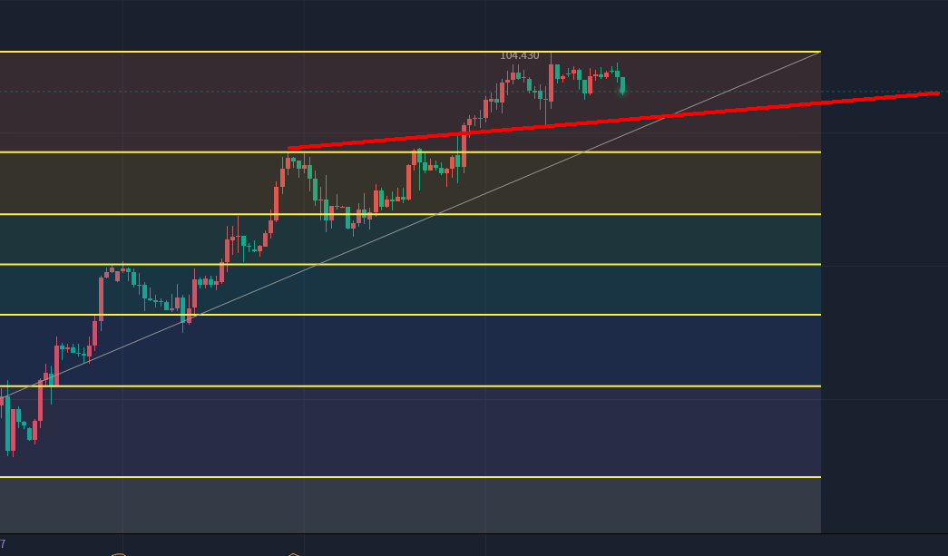05-30 10:12美元指数日线再次收十字星,今日关注101-104.3区间,倾向低多操作