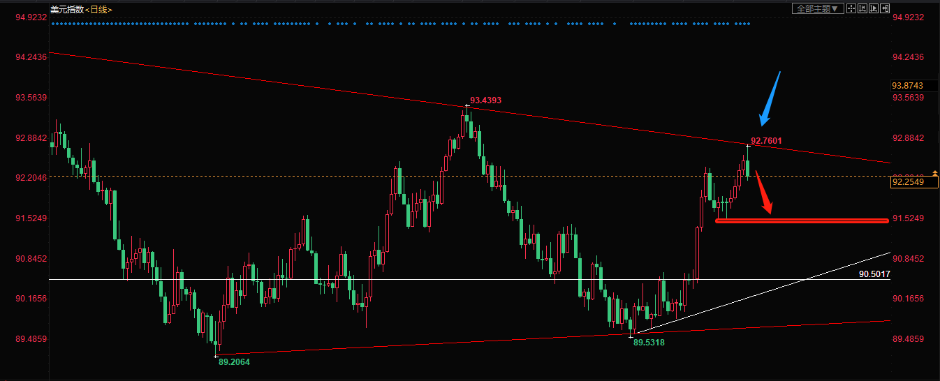 我曾经目前的说过;美元指数92.70---92.85附近是美元的顶部,已经给出明确指示。
