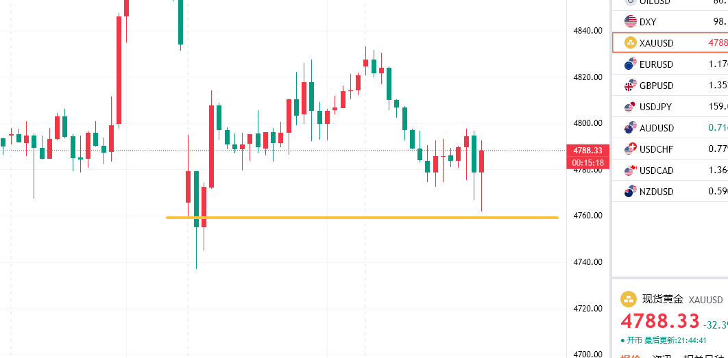 美盘公布的当周ADP数据以及零售销售数据都是小幅利好美元,给到黄金一定压力,只是美伊目前的局势依旧紧张,虽然有谈判空间,但是有一些双方的底线无法达成一致,同时美方给足了威慑,市场目前都是紧张的关注着后续情况,所以市场情绪非常反复,黄金日内连阴杀跌之后在欧美盘也是如期延续,我们跟大家分享的空头思路兑现到了4765一线第一目标位,目前小有反复,晚间的话关注4800分水岭压力位,这个位置不破,晚间大概率还会有二次杀跌,然后才能有更好的上行,原油目前弱势震荡格局保持,反弹空的思路不变!