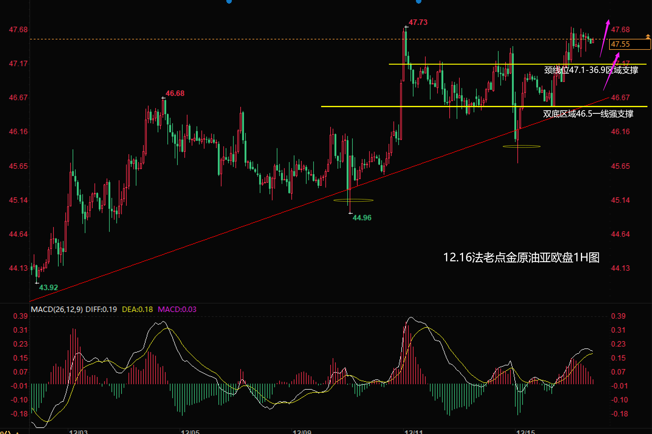 12/16 09 : 4112.16【原油】亚欧盘:原油昨日多单遗憾未能进场,今日支撑关注46.8一线