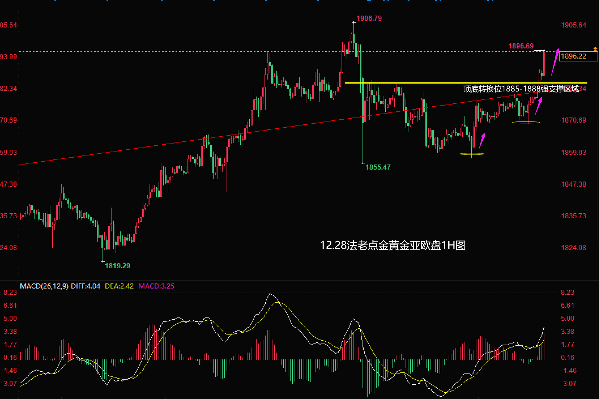 12/28 10 : 1712.28【黄金】亚欧盘:周线级别强势十字K空中加油形态,本周企稳1855一线大概率延续多头震荡上行