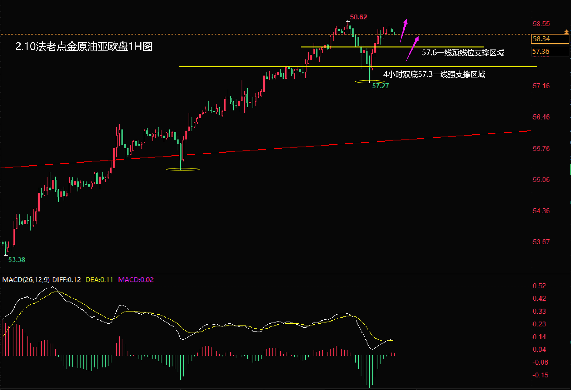 02/10 09 : 182.10【原油】亚欧盘:原油昨日57.3多完美止盈,今日依托57.5回踩主多继续顺势上看