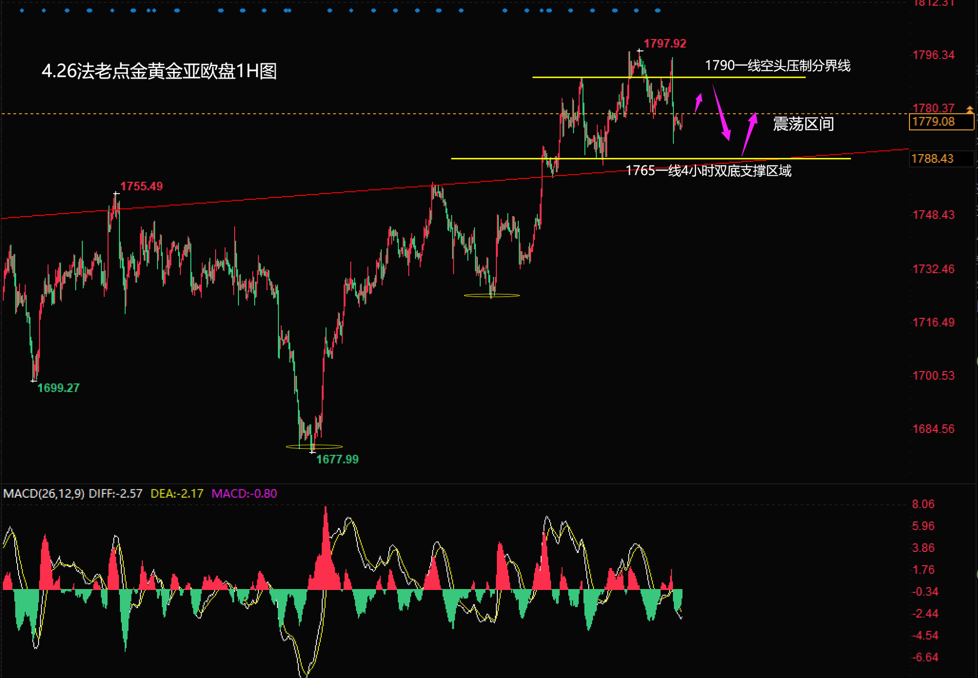 4.26【黄金原油】亚欧盘:黄金周五1794空完美到达1775收,今日1790下方依旧压制空