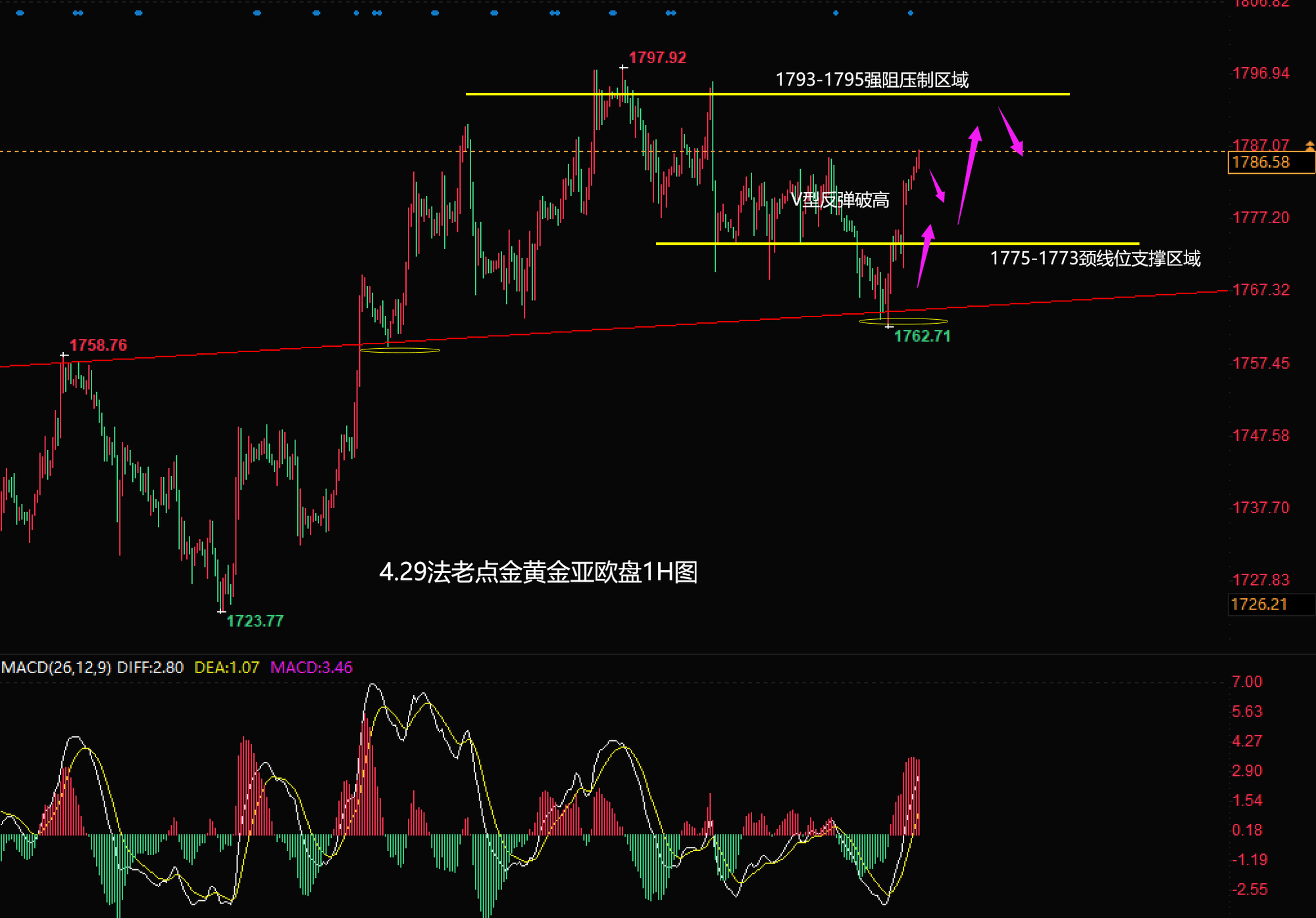 4.29【黄金原油】亚欧盘:黄金昨企稳1760强势探底回升短线再度震荡格局,今日有望进一步挑战1790关口