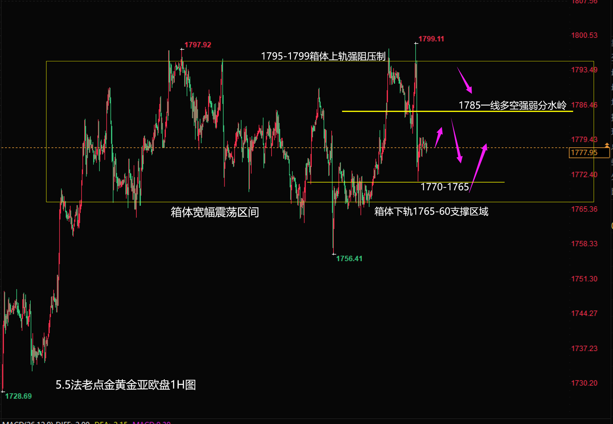 5.5【黄金原油】亚欧盘:黄金昨1791空遗憾出局,今日多空强弱分水岭1785一线