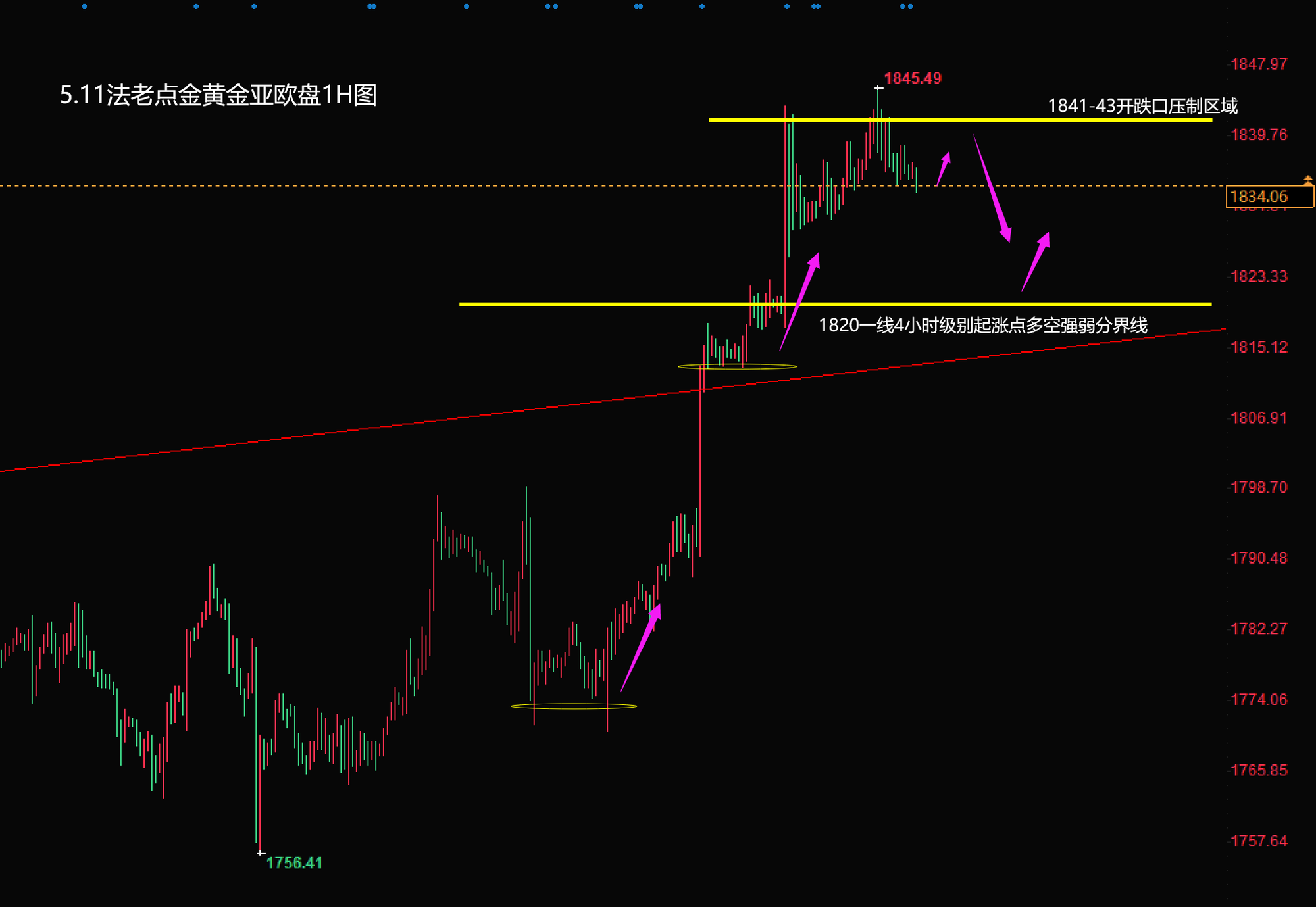 5.11【黄金原油】亚欧盘:黄金昨1842空完美止盈,今日下方有望进一步考验1820关口支撑力度