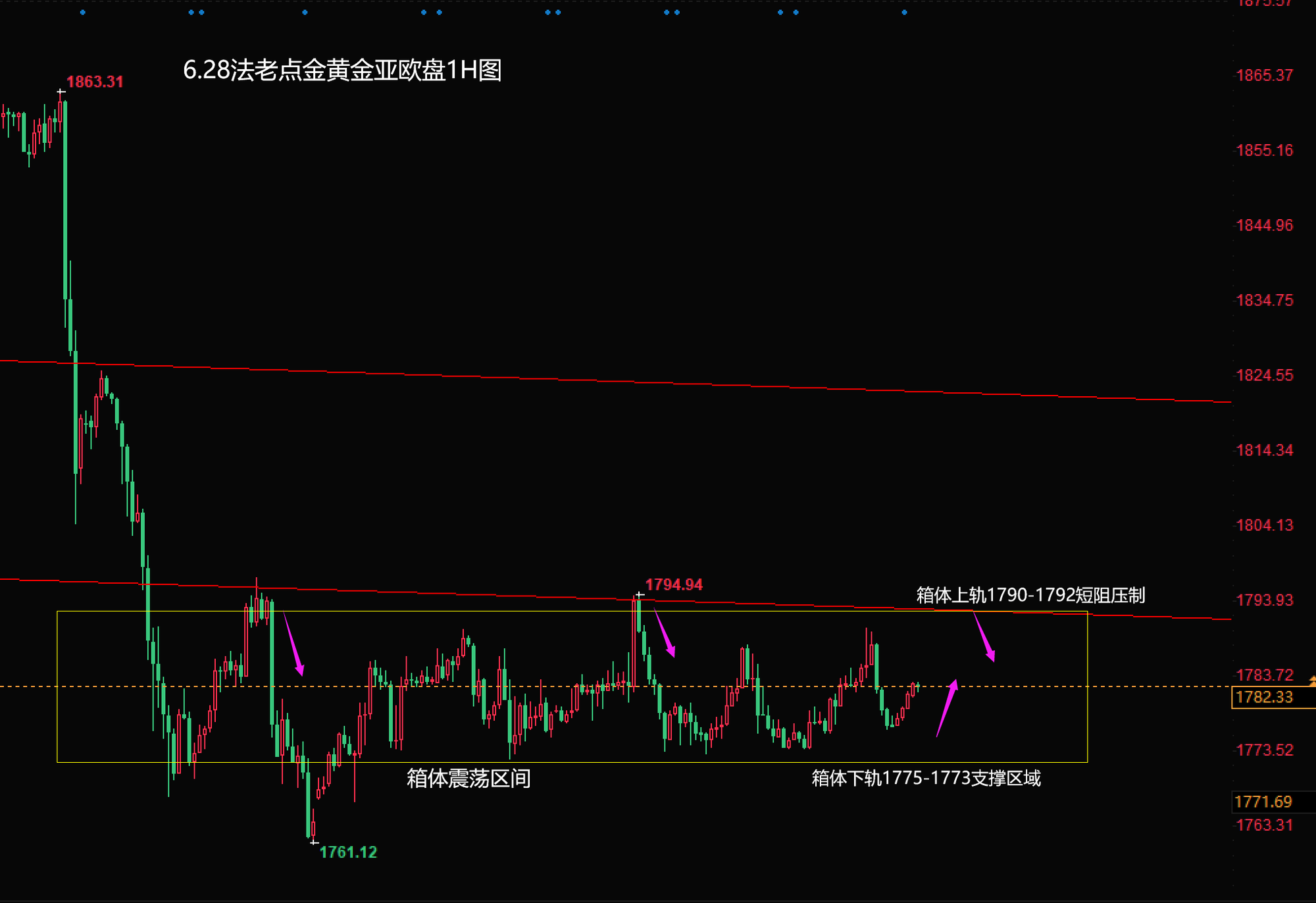 06/28 07 : 526.28【黄金原油】亚欧盘:黄金上周延续低位震荡循环继续承压1790关口,今日冲高依旧主空看回落