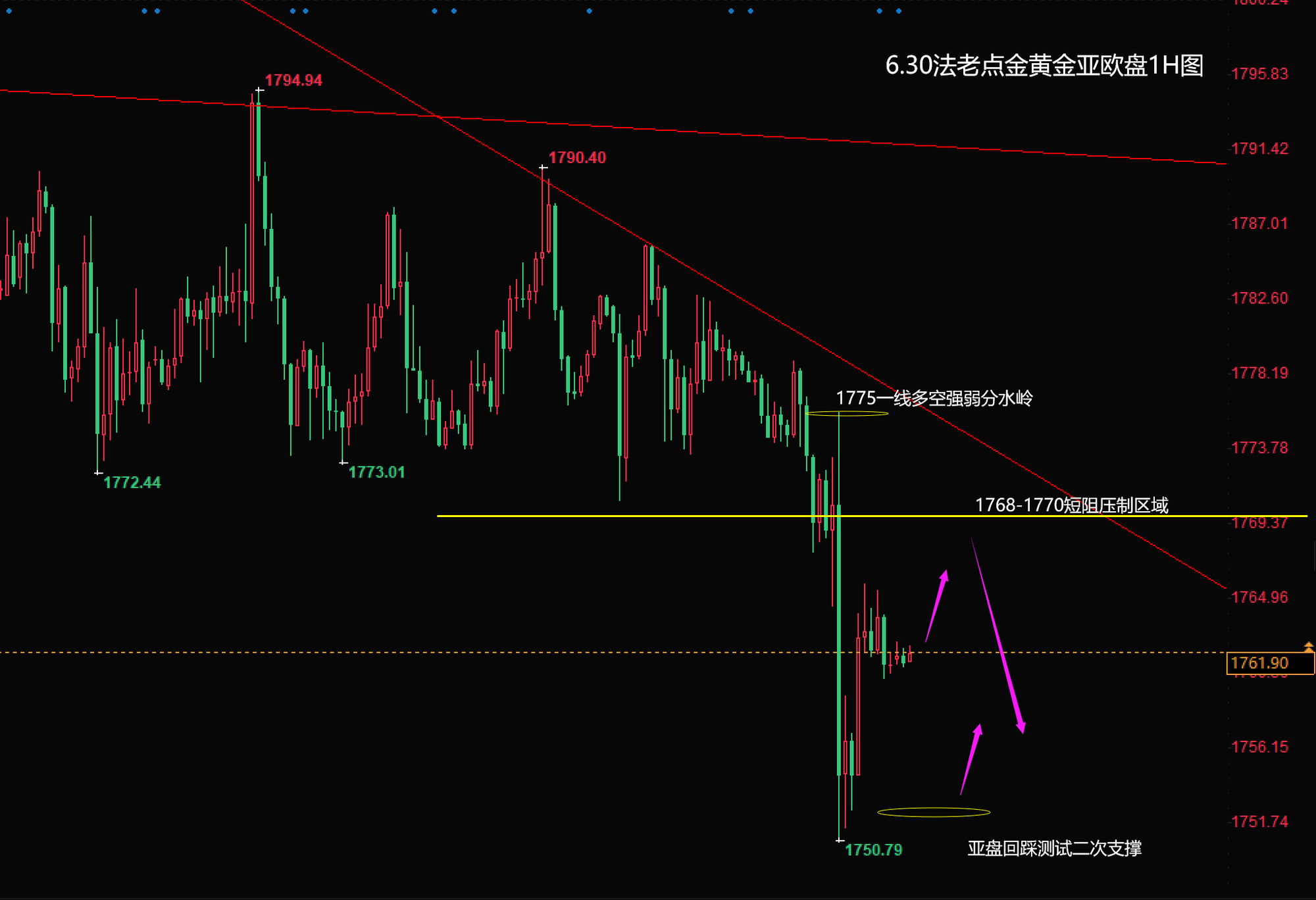 06/30 08 : 396.30【黄金】亚欧盘:黄金昨1775空完美捕捉,今日亚盘走势决定日内多空强弱力度