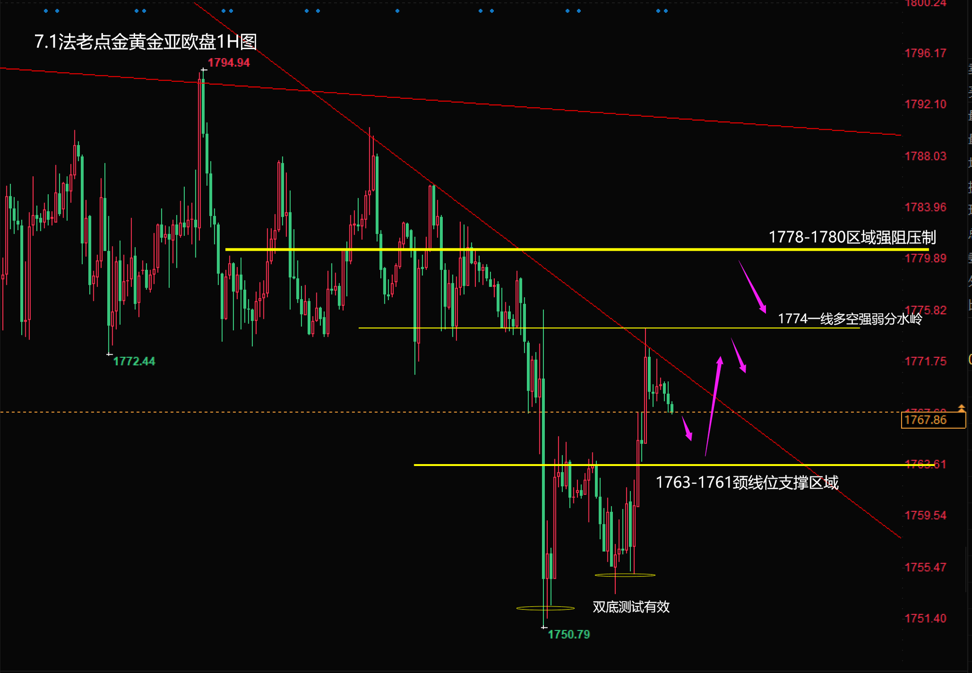 07/01 08 : 467.1【黄金】亚欧盘:黄金月线收官企稳1750震荡回升修复,今日有望延续反弹冲击1775关口