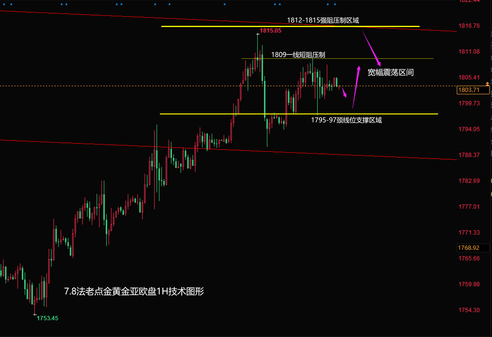 07/08 08 : 187.8【黄金原油】亚欧盘:黄金昨1808空1801收,短线延续震荡区间欧盘强弱是关键