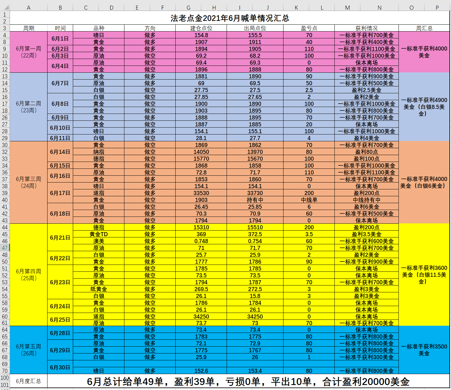 07/12 08 : 242021年第6月总结(22周-26周)6月行情持续稳健输出,整月0损单拿下2万美金