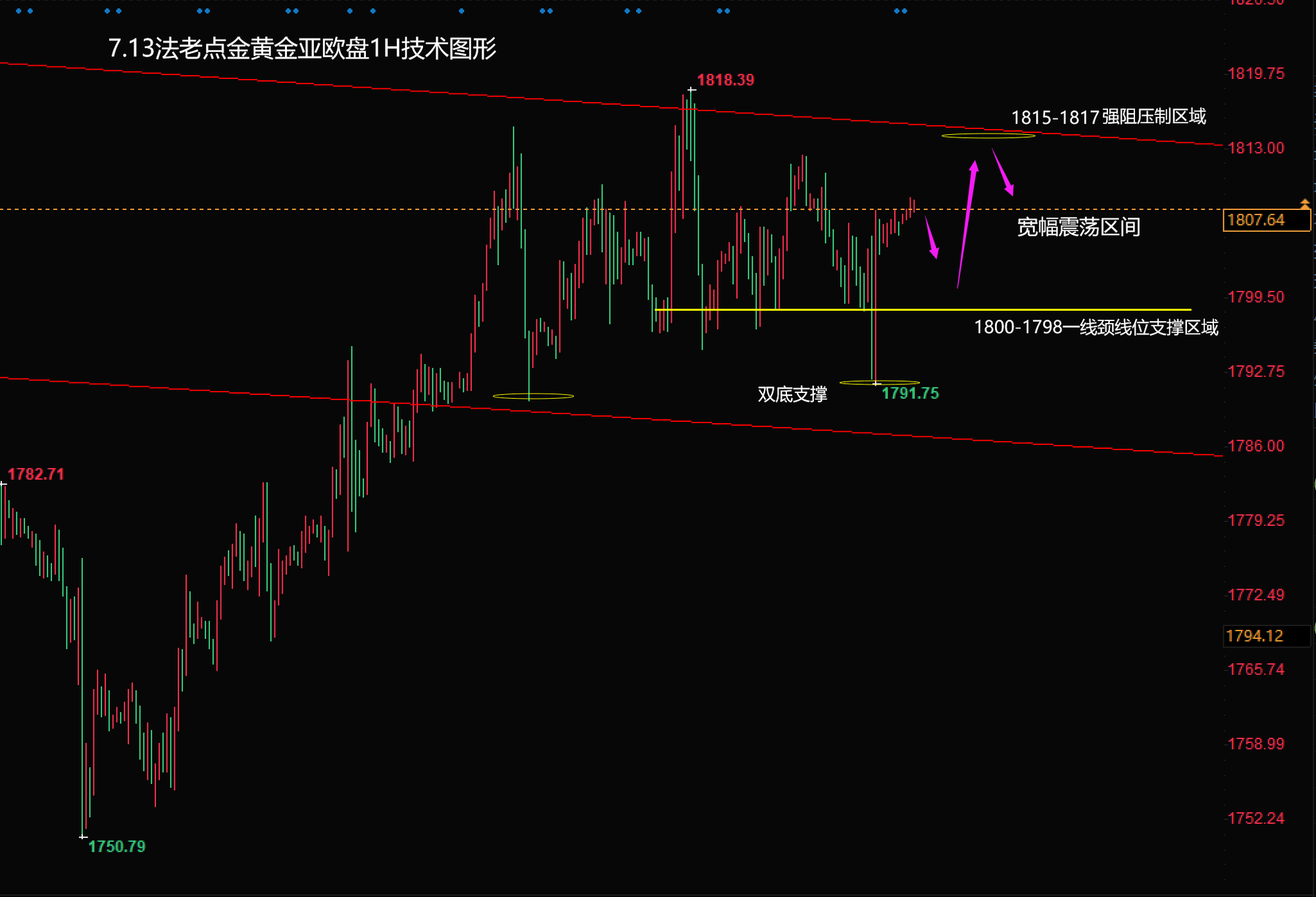 07/13 09 : 257.13【黄金】亚欧盘:黄金昨日快速回踩试探1791关口企稳回升走深V