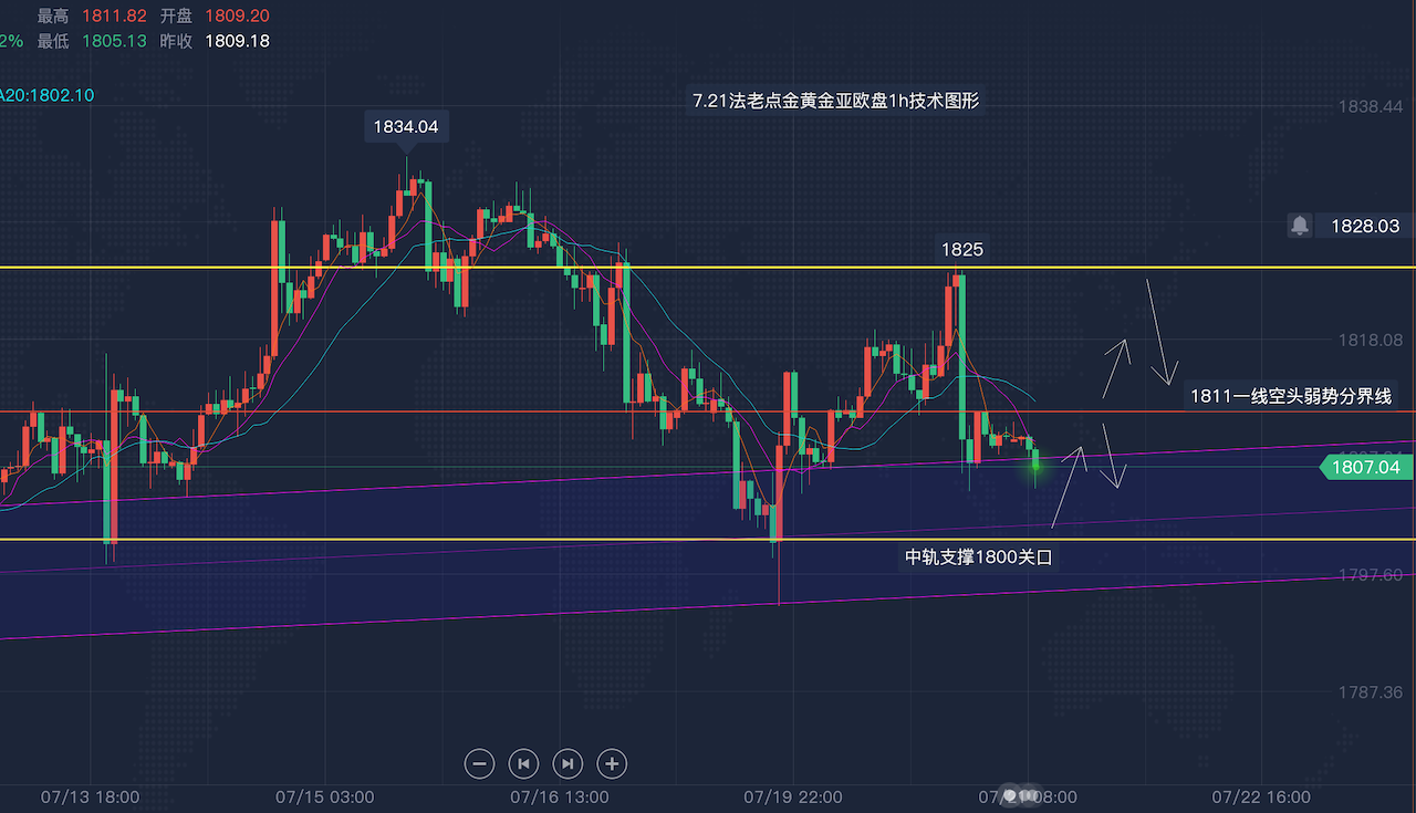 07/21 09 : 377.21【黄金原油】亚欧盘:黄金昨日1812多1823收,美盘再度上演冲高回落破底延续震荡