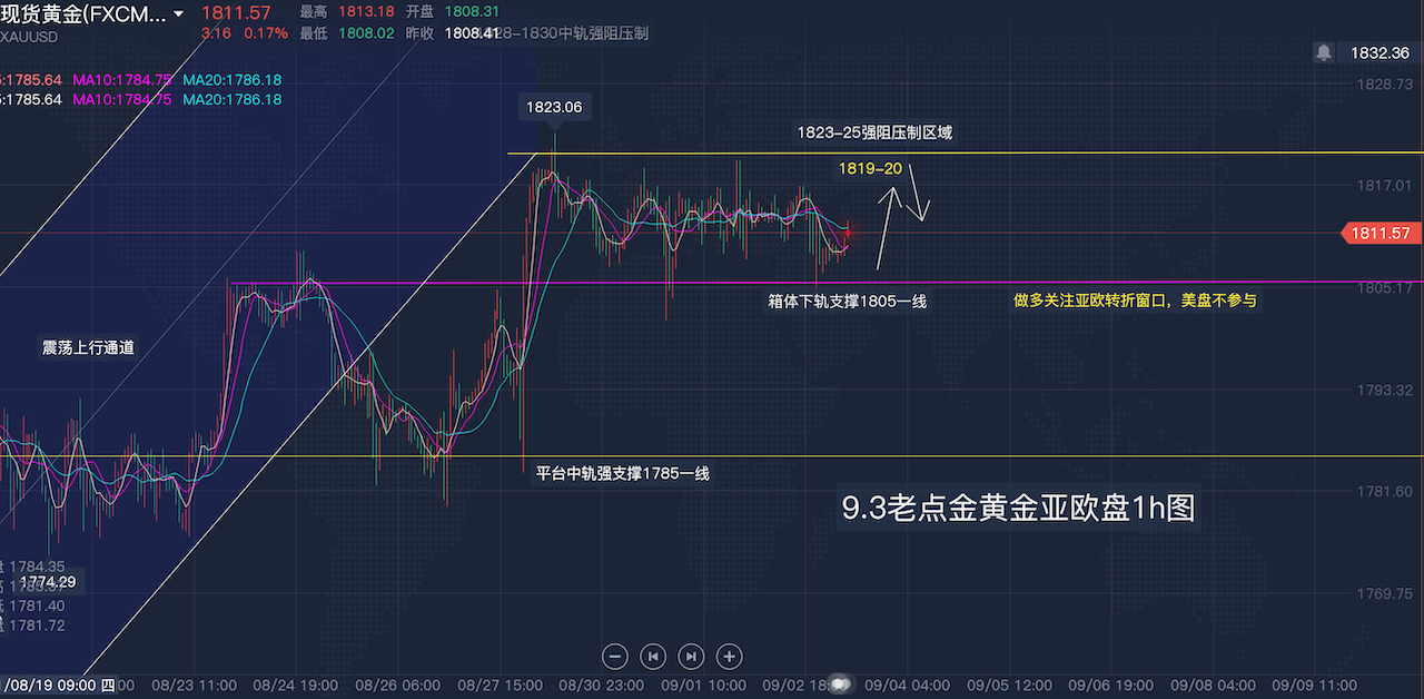 09/03 09 : 229.3【黄金】亚欧盘:黄金昨1816-17空继续止盈,今日延续震荡区间等非农