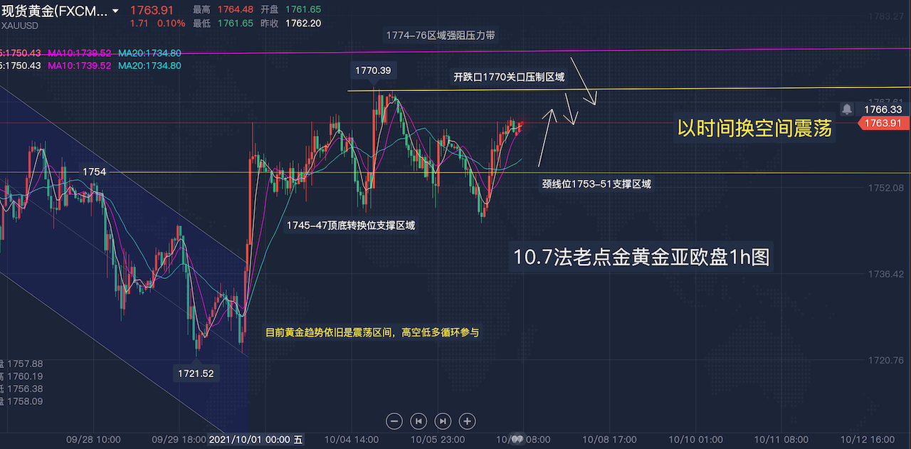10/07 08 : 1310.7【黄金】亚欧盘:黄金昨1757空1760空完美利润,美盘再度探底回升延续震荡区间