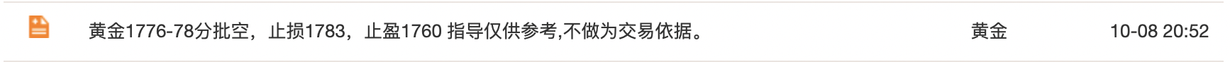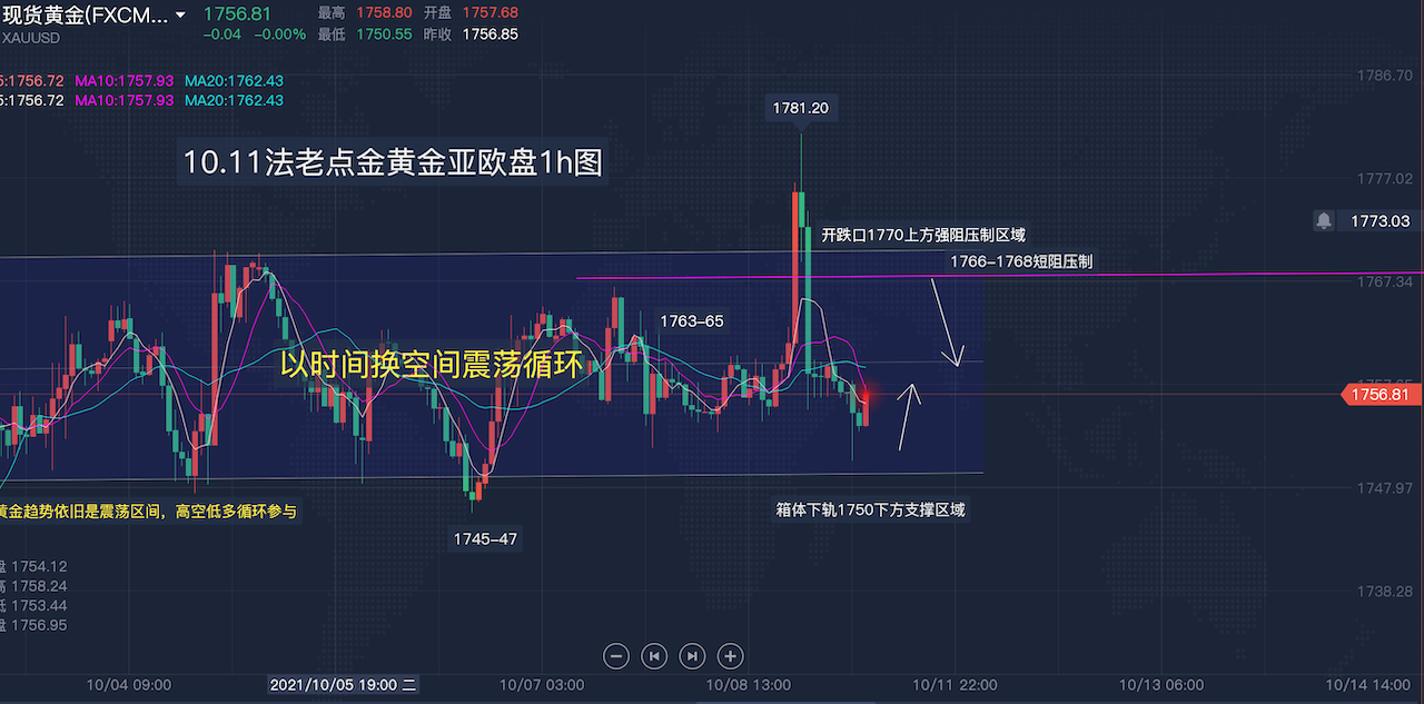 10/11 08 : 21【法老点金】10.11【黄金】亚欧盘:黄金上周非农1778空如期到达1760一线弱势破底,今日1770下继续主空节奏不变