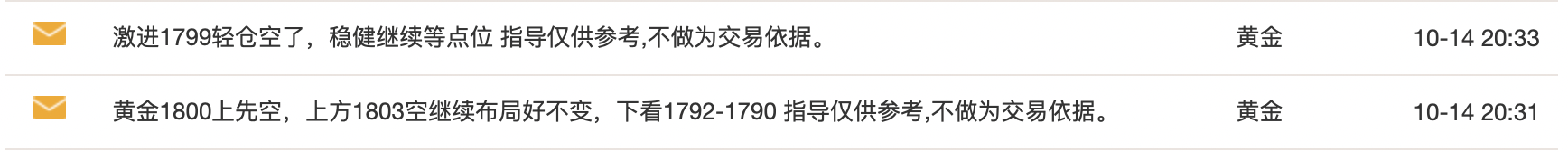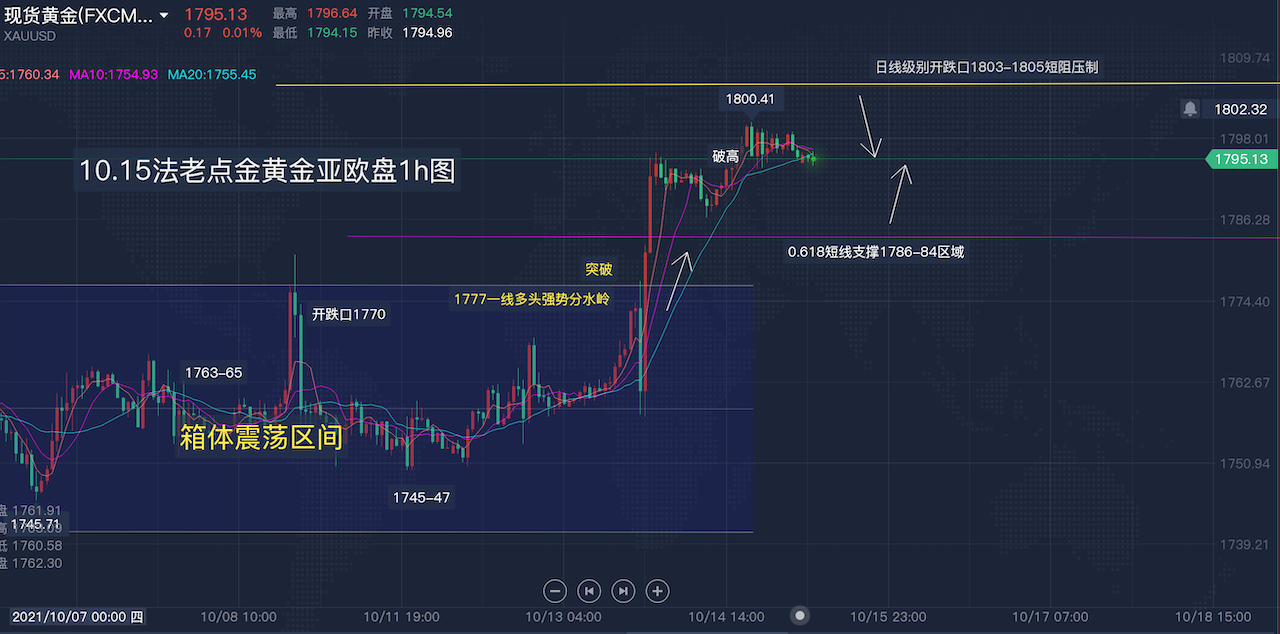 10/15 08 : 55【】10.15【黄金】亚欧盘:黄金昨1799空如期回落,今日冲高测试1800上继续空