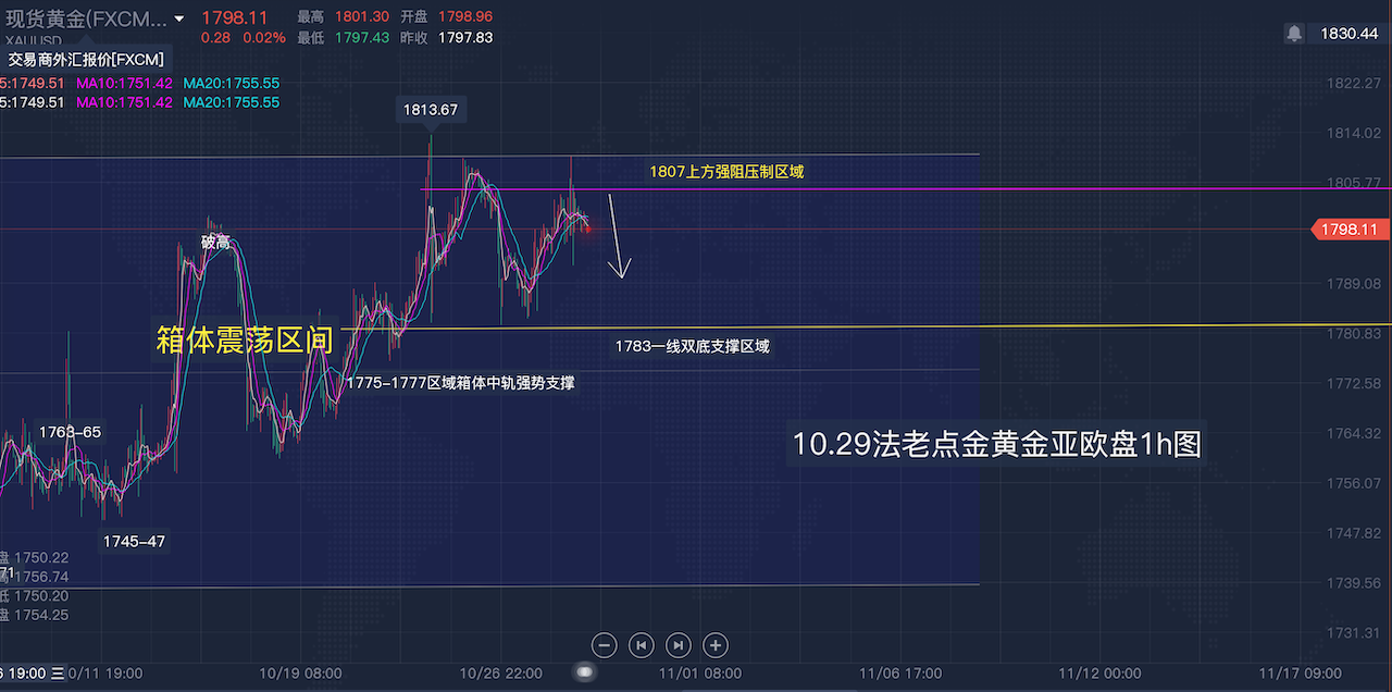 10/29 09 : 1210.29【黄金】亚欧盘:黄金昨1803空1804空1795收,今日1807上继续空看阴线反包