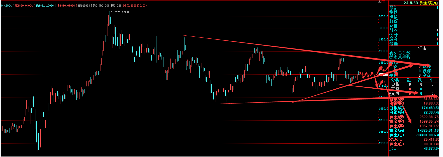技术面上,本周黄金白银走了先跌后涨的行情,而整体变成是17号低点之后出现了强势反弹,而这个反弹将是持续看到20号,而20号之后将持续复杂的震荡到23号,重点看23号转折,之后看到月底,所以核心就在这里,如何布局到时候日内策略会进一步的精确分析,但是当下我还不好判断高低点。另外就是下周重点关注1750与1815的区间突破是关键,有很大的可能在1815与1770的区间进行的复杂的震荡,之前也是如此,所以这里一定要注意节奏的发展,而白银重点看21.4与23的区间突破,整体可能也是在这个先是复杂的震荡,之后再看变盘情况!更多的是以日内策略为准,预期下周走势路径分析图: