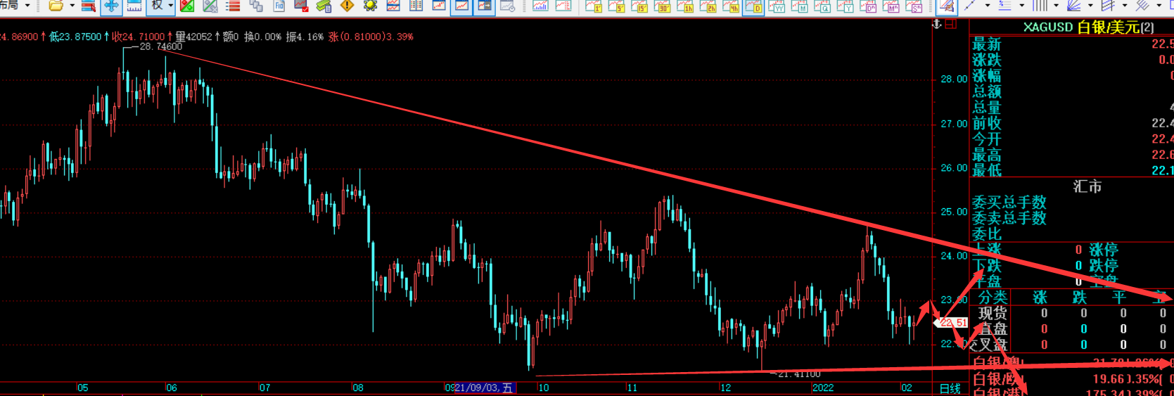 ; ; ; ; ;此外仍然需要关注美联储的升息预期的进展,全球抗疫的进展,以及美联储官员们的讲话。而这个无法精确预测,也只能边走边看,而疫情的发展,核心就是看日增确诊情况的变化是否进一步地突破300万人,还有就是看美国的数据的增减,当下以有所下降,但后期看是否进一步的出现变动,如果上升整体也是利多黄金白银。更多的还是技术面上与日内的消息变动再进一步的分析。