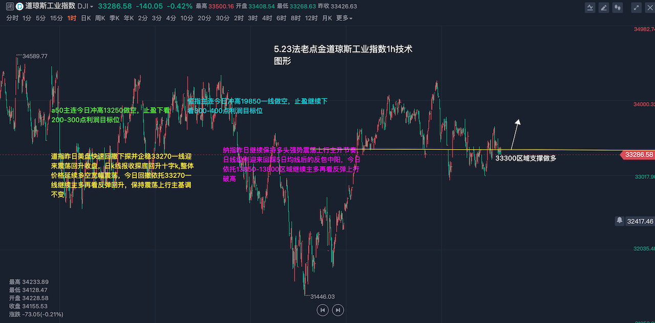 道指昨日美盘快速回撤下探并企稳33270一线迎来震荡回升收盘,日k线报收探底回升十字k,整体价格延续多空宽幅震荡区间,不过今日亚盘道指整体在亚盘小幅冲高后承压33470关口不断弱势下行回落走弱,今日还有进一步回落下行试探33250关口预期,日线级别目前10日均线与20日均线形成死叉排列,稳妥选择欧盘观望为上,等待米股开盘后再做布局,下方支撑关注33250-33200区域,上方短线压力33500关口,日内先行依托此区间看多空震荡运行节奏,短期来看企稳33200关口大概率会继续以时间换空间迎来多空震荡运行节奏,目前日线级别双底33000关口支持有效,此位置也是近期多头强势分界线,今日欧盘暂时观望,等待晚间美盘走出进一步形态后再入场,纳指昨日继续保持多头强势震荡上行主升节奏,日线级别迎来回踩5日均线后的反包中阳,整体技术形态继续保持强势多头主升节奏,今日回踩依托13850-13800区域继续主多再看反弹上行破高,目前短中期均线依旧保持完好多头形态,强势多头主升行情上不言顶,任何回撤均是介入多单机会,纳指米股开盘前回踩企稳13800一线继续保持顺势低多看涨,逆势空单一律不参与,具体操作策略我会在盘中提示,及时关注。
