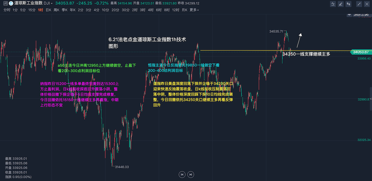 道指昨日美盘承压于34530关口快速走跌深度回落下探并企稳于34200关口迎来快速反抽震荡收盘,日k线报收压制震荡回落中阴,整体价格经过深度回踩下探10日均线完成短线调整,通常一波趋势的强势调整位置就是触底10日均线后回升,目前价格在10日均线完成快速探底回升,短期价格一旦突破34500关口有望继续迎来多头单边震荡上行格局,所以今日回撤依托昨日小时线颈线位34250关口继续主多再看反弹回升,上方短期分水岭34500关口,一旦日线级别突破并站稳此位置上方则有望进一步打开多头上行空间,趋势将重回强势多头形态,纳指昨日围绕15200一线多单最终完美到达15300上方止盈利润,日k线报收探底回升震荡小阴,整体价格回撤下探企稳于5日均线支撑完成修复,今日回撤依托15150一线继续主多再看涨,短期高位震荡调整不改变中期上涨形态,日线级别多头强势分界线15050关口,日线级别企稳此位置上方继续顺势看涨不变,具体操作策略我会在盘中提示,及时关注。