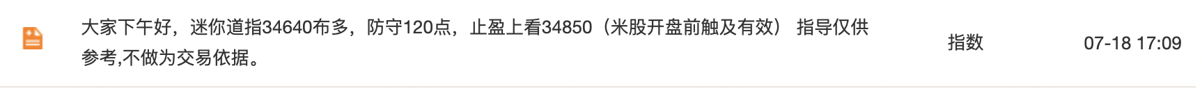 07/19 16 : 327.19迷你道指/迷你纳指日内解盘
