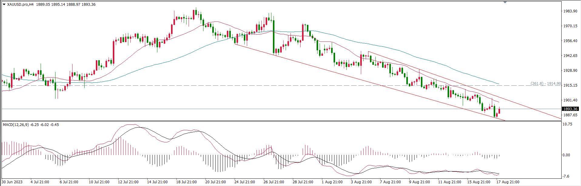 这是黄金4小时级别K线走势图
