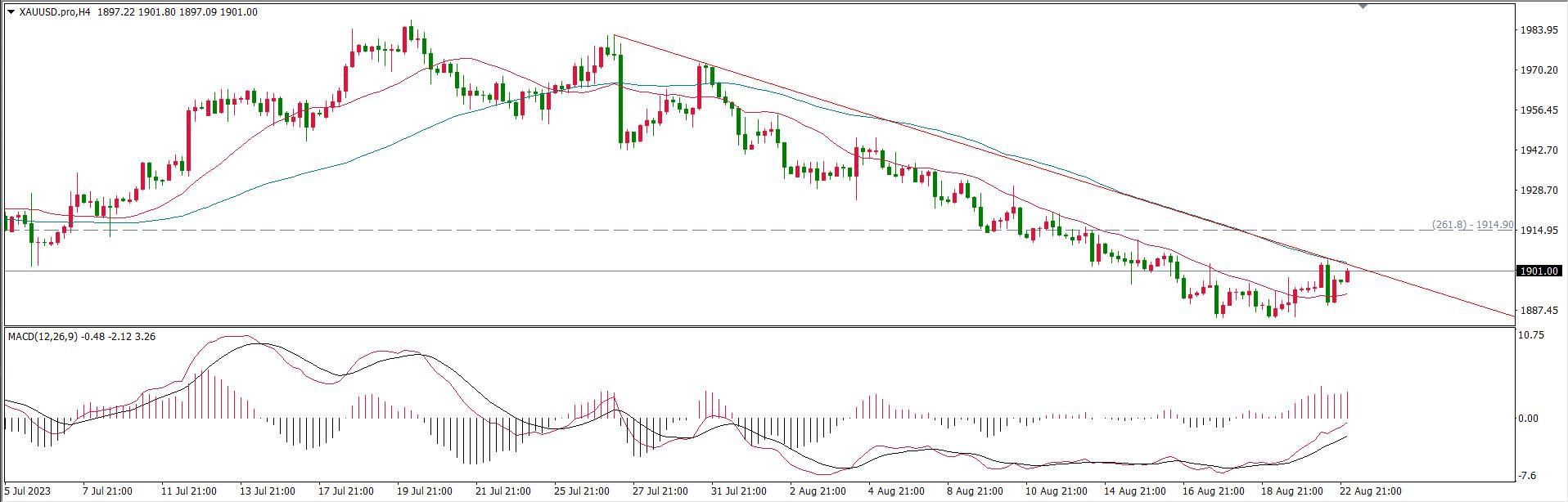 昨天黄金触及下降通道上轨后回到1890,早盘再次上探,说明下方1885的支撑作用目前是非常明确的。从图中我们可以观察到,通道上轨处,还有60日均线与之重合,形成了双重压力位。在没有上破之前,可以做空,但是千万不要扛单,或许会迎来一波反弹,但是不能确定为反转,因为月线和周线级别都需要考虑1915的重要压力得失情况。