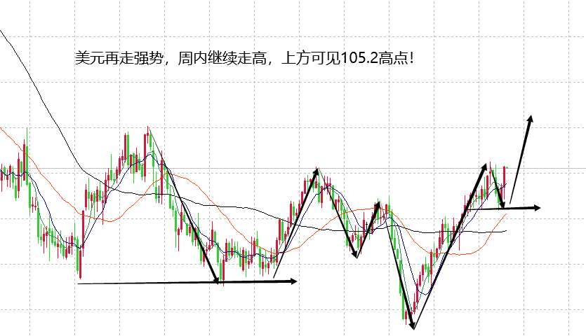 美元早盘正常开盘,正如周末评论讲过的,9月非农数据公布,没有改变山海对美元的预测,一切都走在合理范围之内。自这波美元在104.2走出回落,山海就提前讲过,这波回落空间要关注102.8强弱点位的得失,如果不破102.8,则在震荡中继续走高,如果破位102.8,则可走出现大跌空间,实际行情就走出了第一种可能,在周四触及102.8后走出持续上涨空间,同时,在本月非农数据的加持之下,美元再次走出上涨,试探104.2前高,很显然,美元这波调整空间走完,下一波将破位104.2,继续攀高至105.2前高,当日美元在强势中,可继续看慢涨空间。