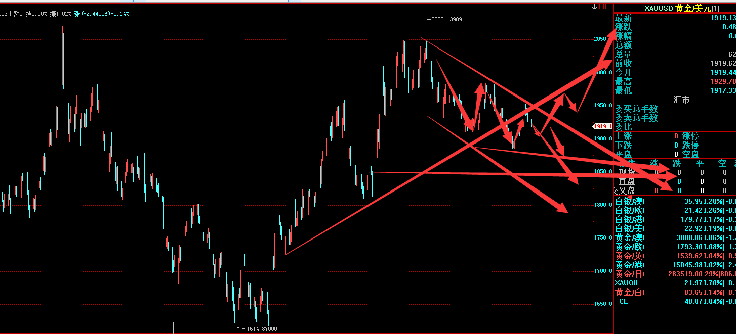 ; ; ;以上因子造成黄金白银本周持续走了震荡下跌的关键,所以本周我们持续走震荡看空为主。但是本周的复杂性也比较大,所以整体的结构上可操控性比较低,如果不能完成大的波段思路,整体是比较容易被打出局的,所以后期的整体结构最好的方式可能还是波段思路,以时间周期为平值点,之后单连续方式去完成操控性更适合。