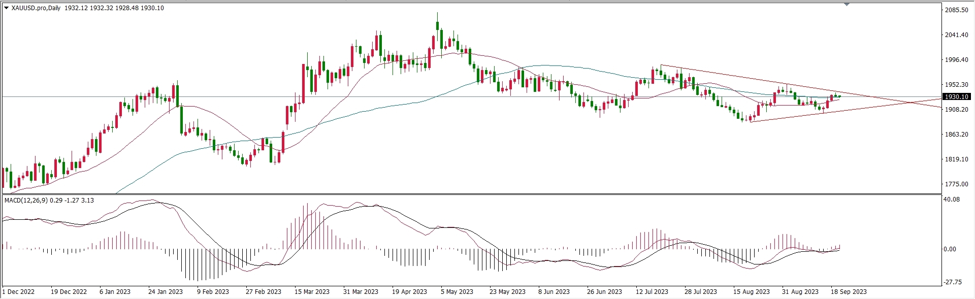 这是黄金日线级别K线走势图