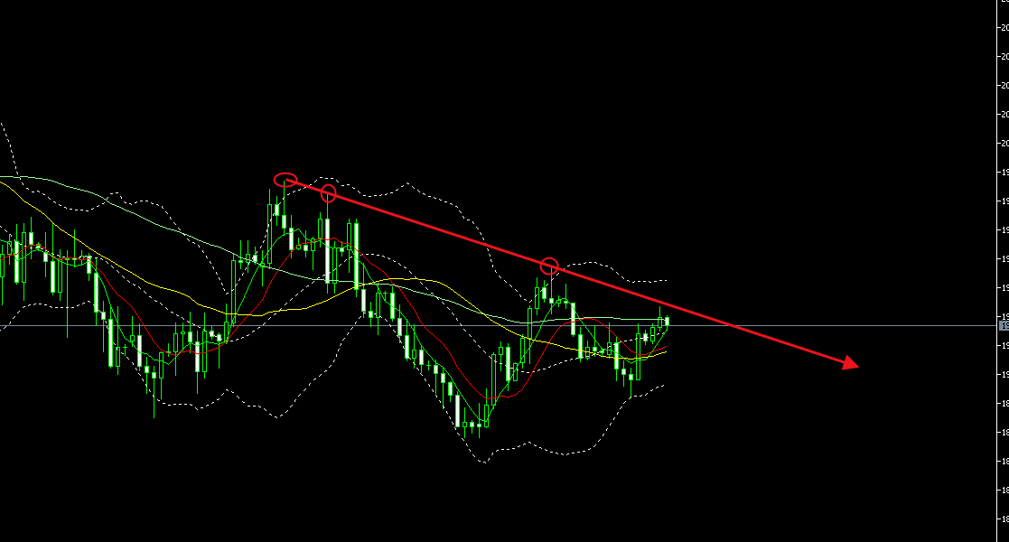 昨天市场行情波动不到,日线布林带呈现震荡格局,趋势斜率目前在1936一线形成压制力。趋势格局有滞涨的形态出来,目前所看关注双顶形态的产生。