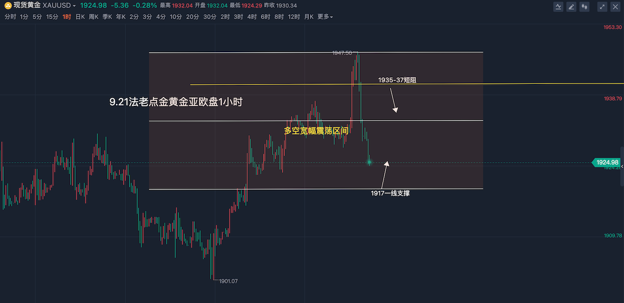 09/21 09 : 329月21日【黄金原油】亚欧盘:黄金昨日1946空利润快速收,凌晨承压1947关口回落破底延续弱势,今日反抽依托1937一线继续主空再看下跌,原油昨日89.3多90.1扫止盈,今日反抽依托90.3一线继续主空再看延续回落调整