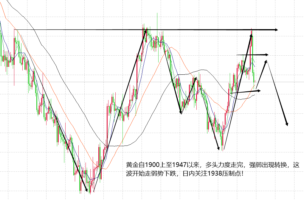 无论做多,还是做空,都有可能赚钱,唯有贪婪者例外,要投资,就要屏蔽兴奋,至少不要在错误的时间兴奋,一切的交易,情绪起到关键性的作用,花全部的时间研究趋势,永远不要和趋势作对,学会跟随,才能学到精髓,错误并不可耻,也没有关系,可耻的是在错误的时候不懂得修正,金融市场没有常胜将军,一个人无法赚到认知范围外的钱,投资本身就是对自我认知的考核。周三行情完全在山海预测之内,保持两个关键,第一在美联储决议之前,看好1928支撑看涨,上方关注1950,第二,本次美联储大概率不加息,黄金会冲高回落,结合实际行情来看,黄金冲高至1947后走出下跌,基本涨跌方向,空间都符合预期,那么,借助周三的这波行情,山海要强调接下来黄金会走出多空调整,开始转向看空做空。注意方向和节奏的转换。