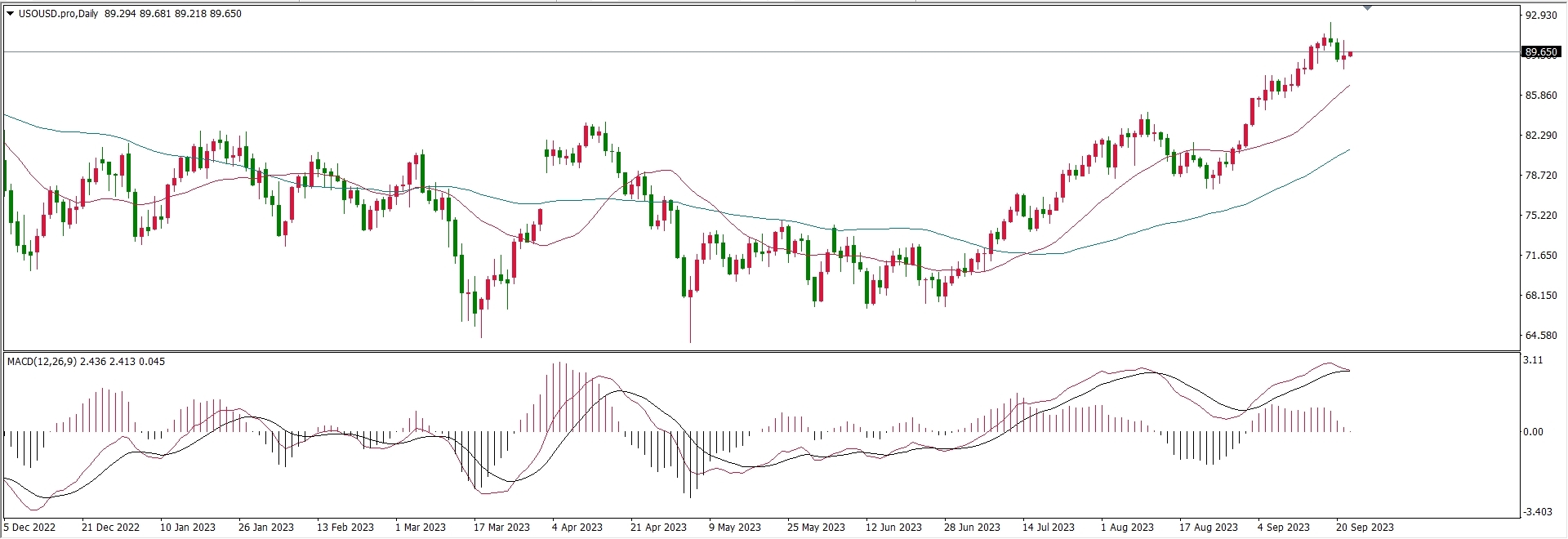 这是原油日线级别K线走势图