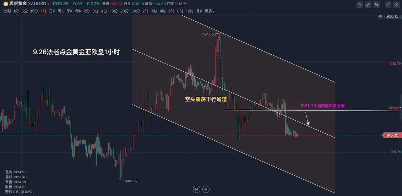 09/26 09 : 139月26日【黄金原油】亚欧盘:黄金昨日1929空遗憾未能进场,美盘反复冲高承压1926一线再度回落下行破底收盘,今日反抽依托1921一线继续主空再看跌,原油昨日反抽承压90.8关口回落调整收阴,今日反抽依托90.4一线继续先空再看下跌