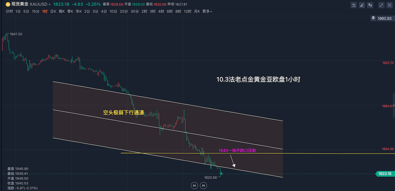 10/03 08 : 3710月3日【黄金原油】亚欧盘:黄金昨日承压1848关口弱势下行破底延续极弱单边空头,今日反抽依托1840一线继续主空再看跌,原油昨日92.1一线空遗憾未能进场,美盘承压91.8关口弱势下行破底收盘日线级别三连阴进入调整形态,今日反抽依托90.5一线继续主空再看下跌