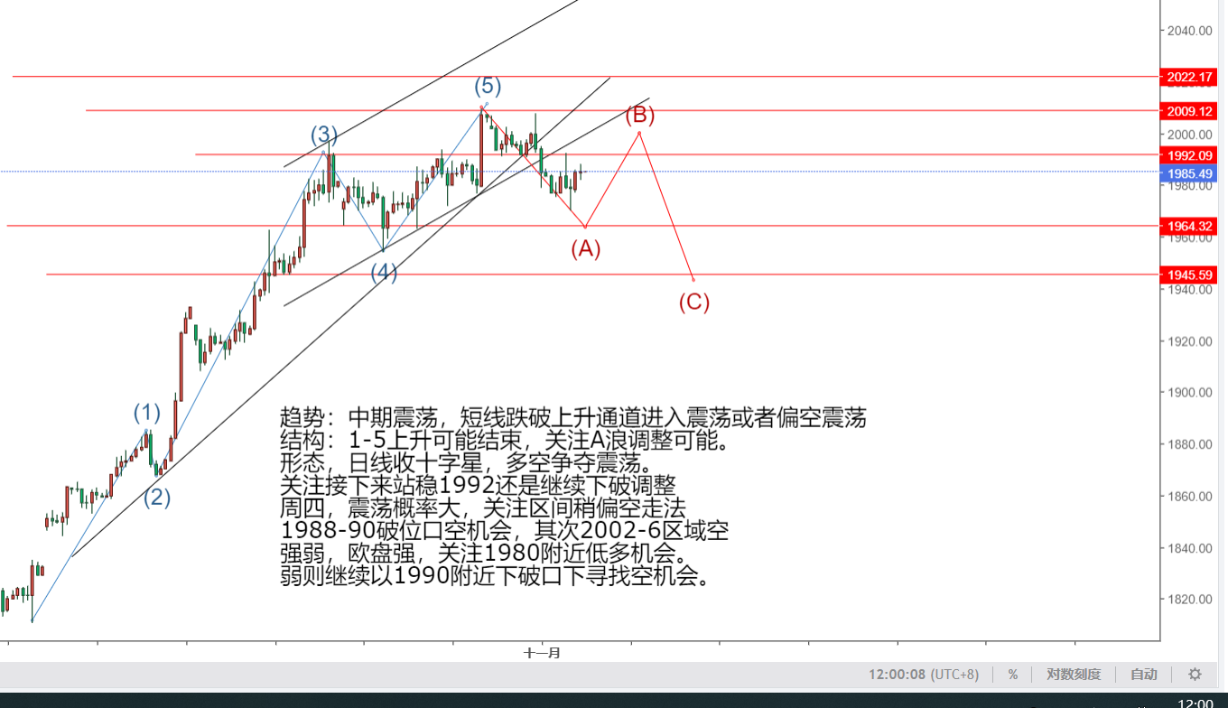 交易思路:先关注1992下高空机会,如站稳此处,再做震荡偏多对待。